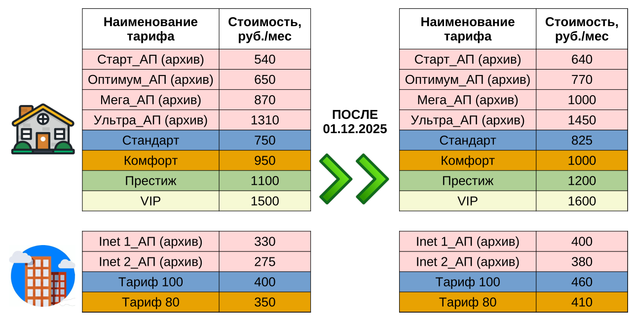 Изменения цен на услуги доступа в сеть Интернет начинают действовать с 01 декабря 2025 года.